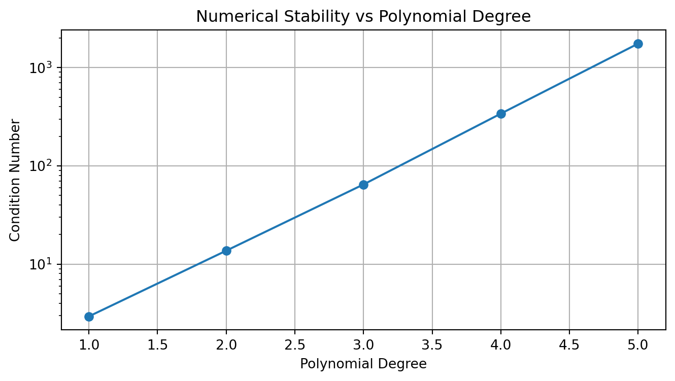 import matplotlib.pyplot as pltThe design matrix structure affects numerical stability: