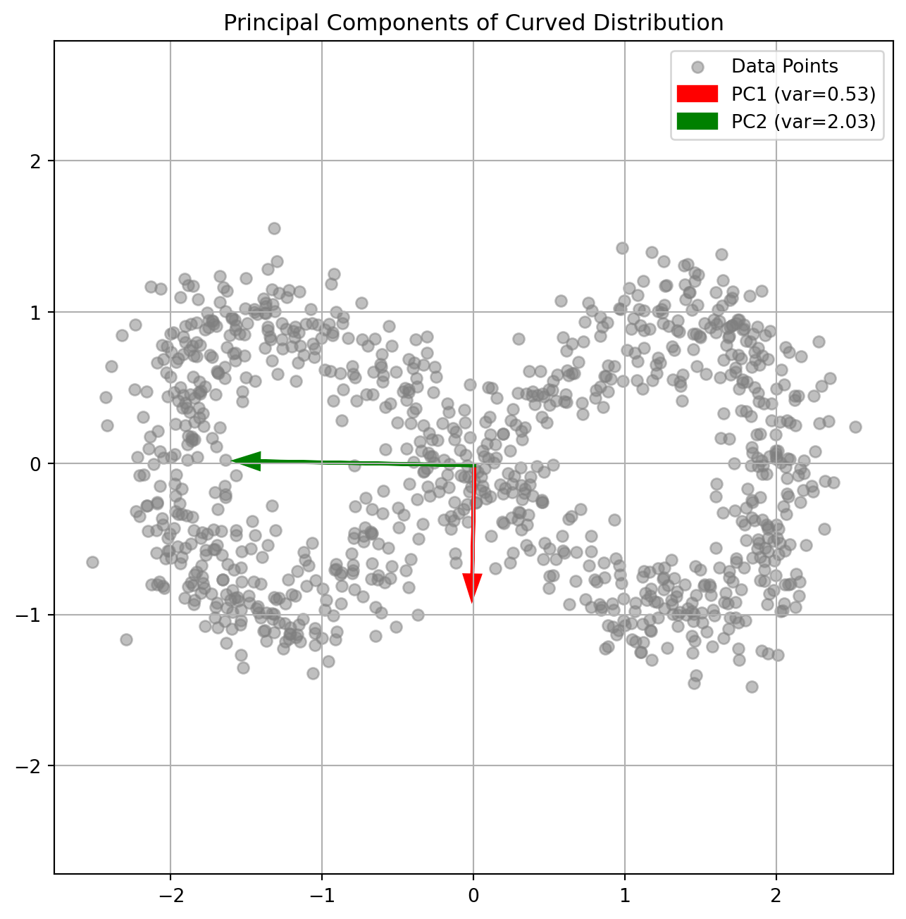 import matplotlib.pyplot as pltPCA finds orthogonal directions of maximum variance: