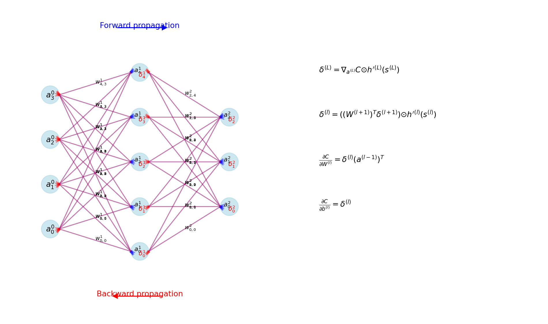 The neural network integrates these components into a cohesive system that manages forward and backward signal propagation: