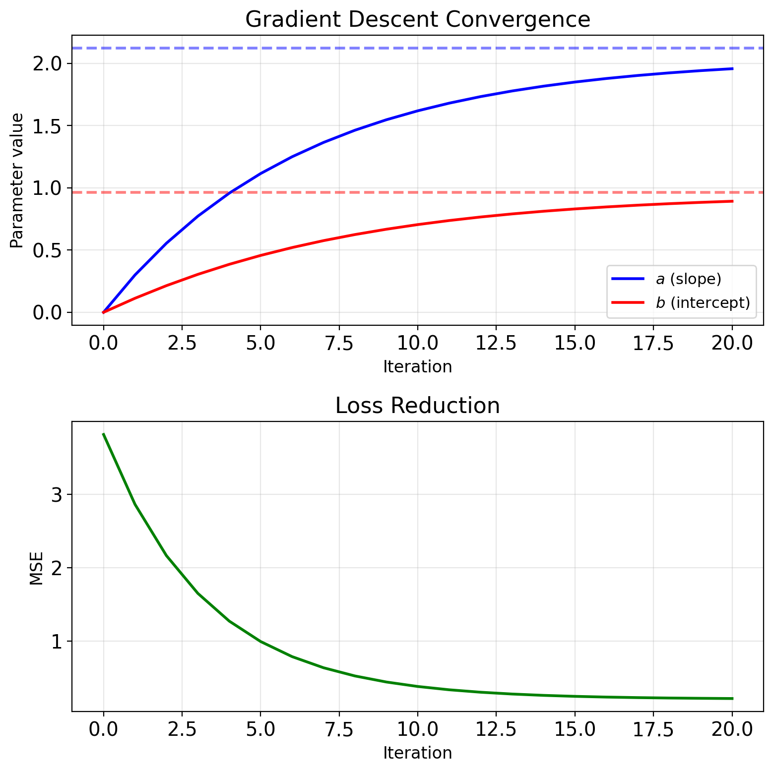 Update: \[a_{t+1} = a_t - \eta \frac{\partial J}{\partial a}\] \[b_{t+1} = b_t - \eta \frac{\partial J}{\partial b}\]