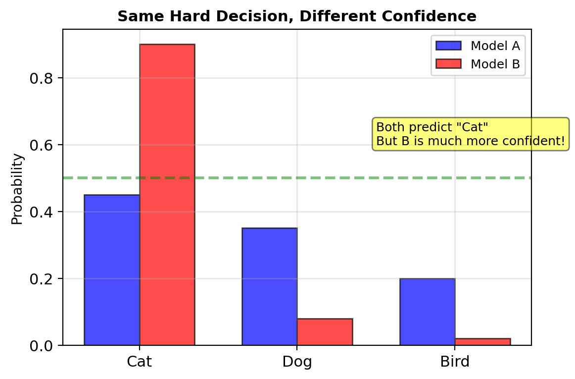 Hard decisions: \(\hat{y} \in \{0, 1, ..., K-1\}\)