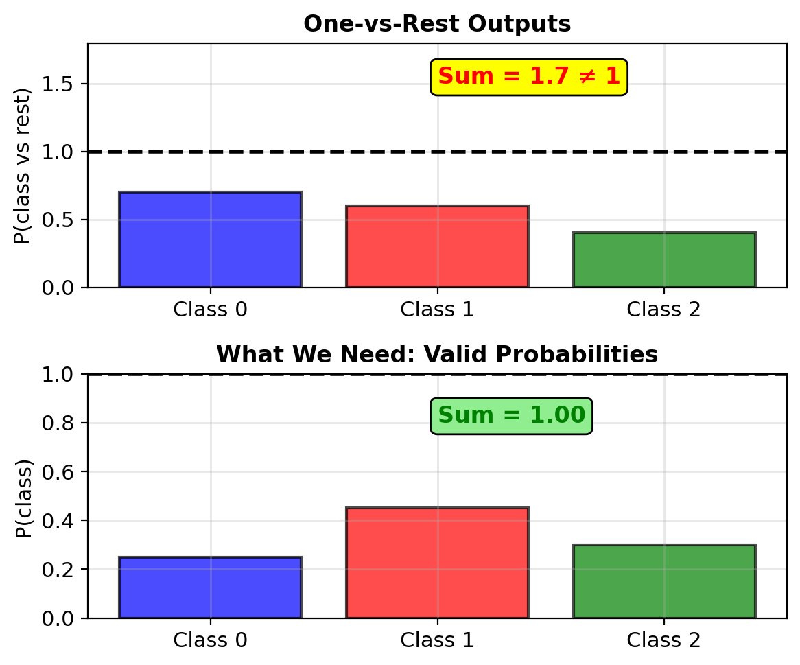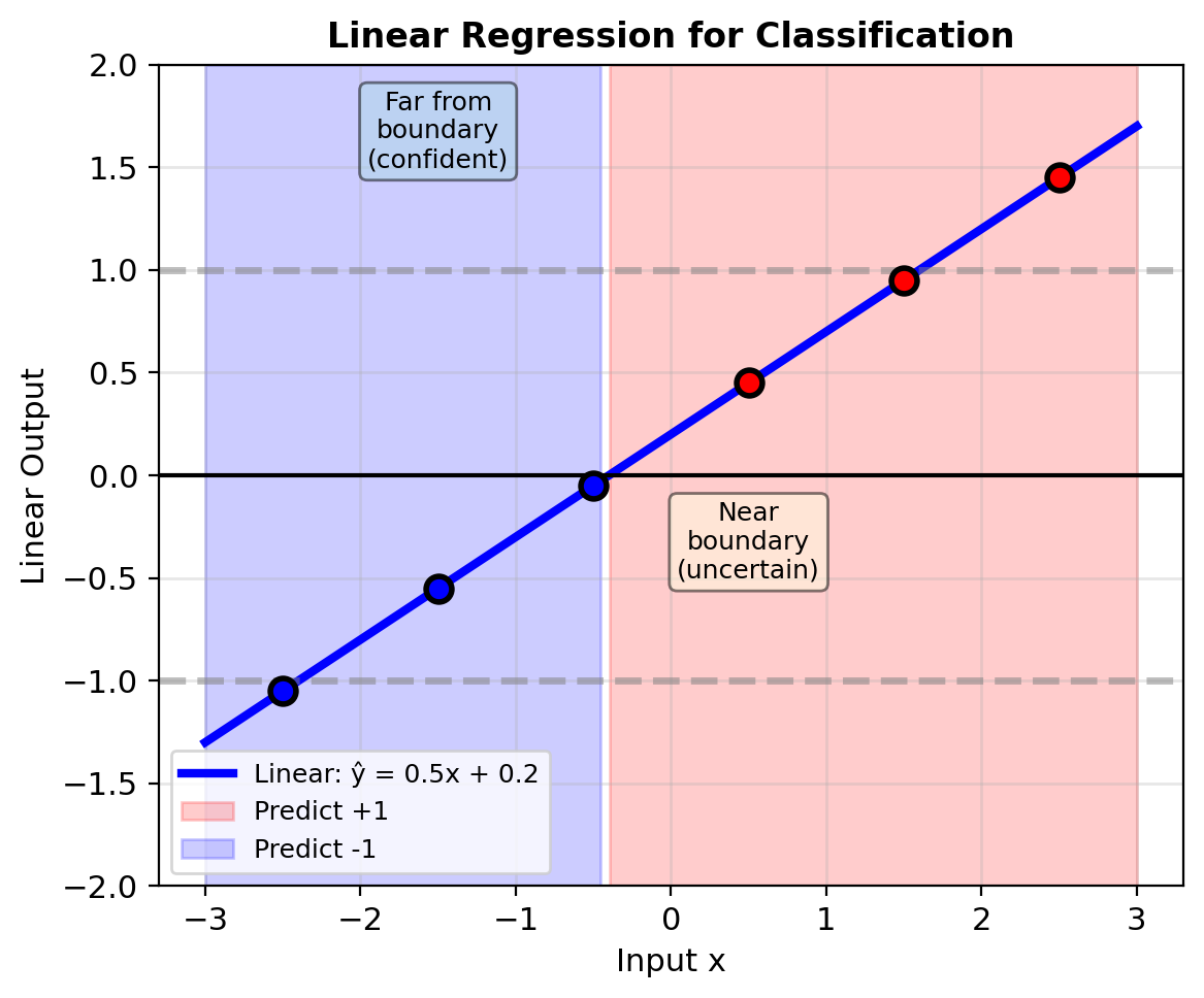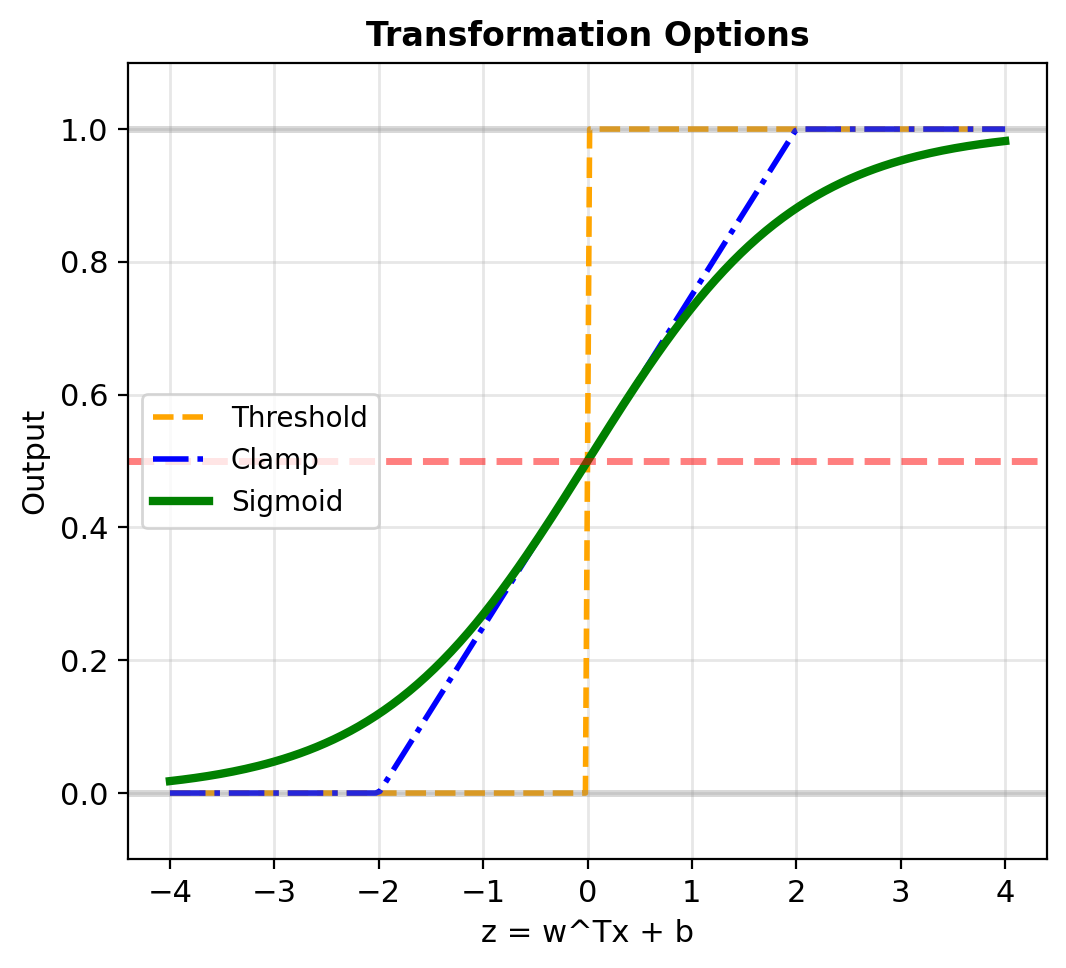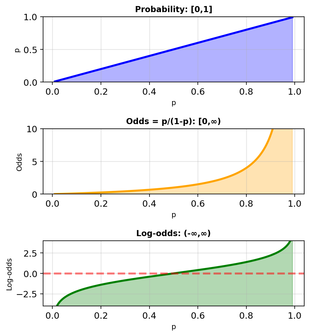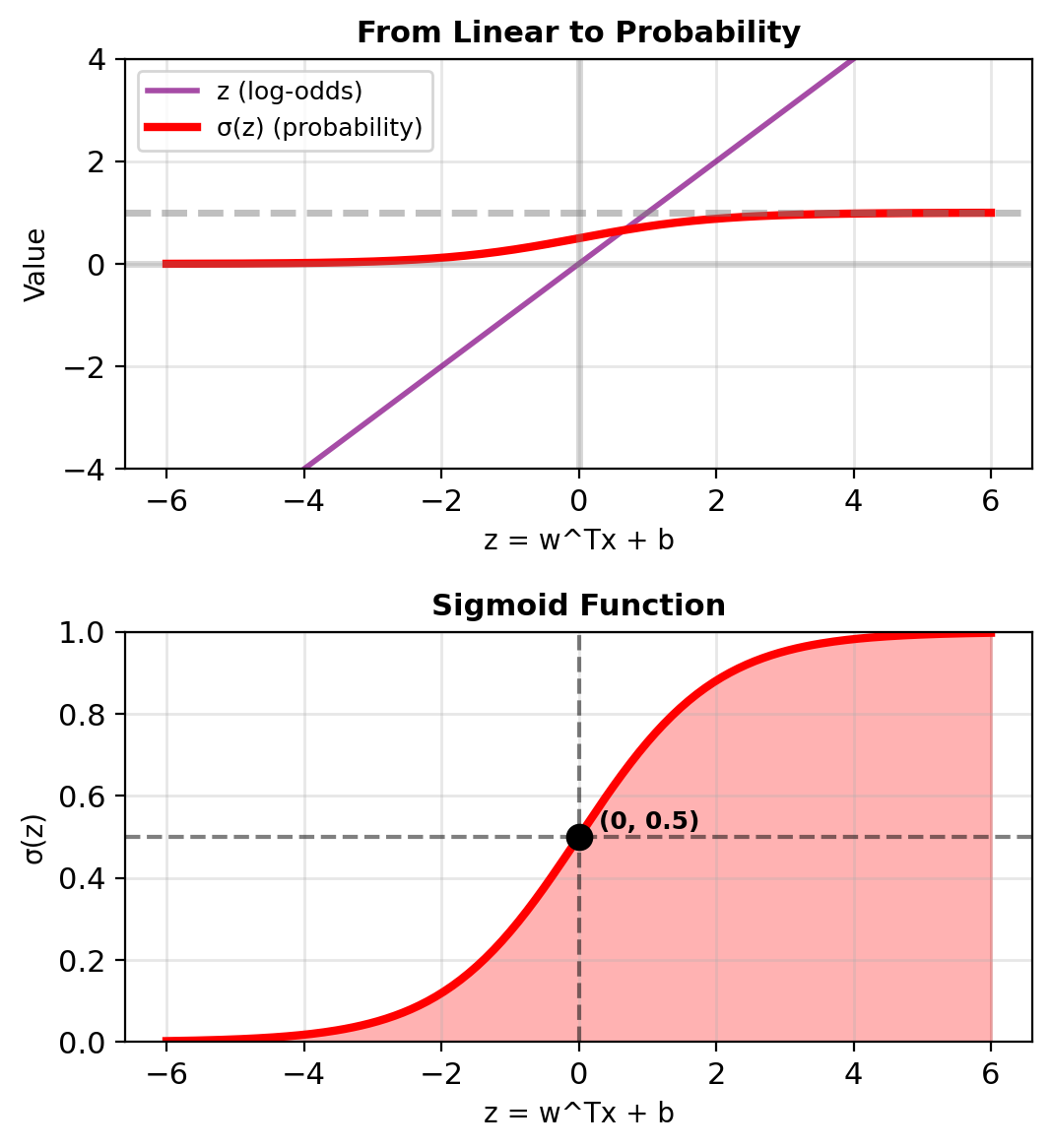 Problem: Linear outputs \(\in (-\infty, \infty)\) but probabilities need \(\in [0, 1]\)