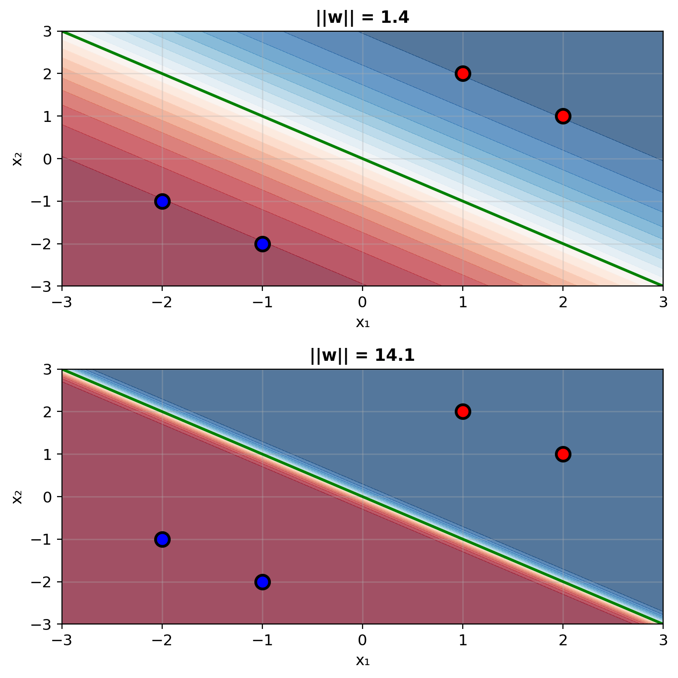 print(f"Final ||w|| = {np.linalg.norm(w):.3f}")