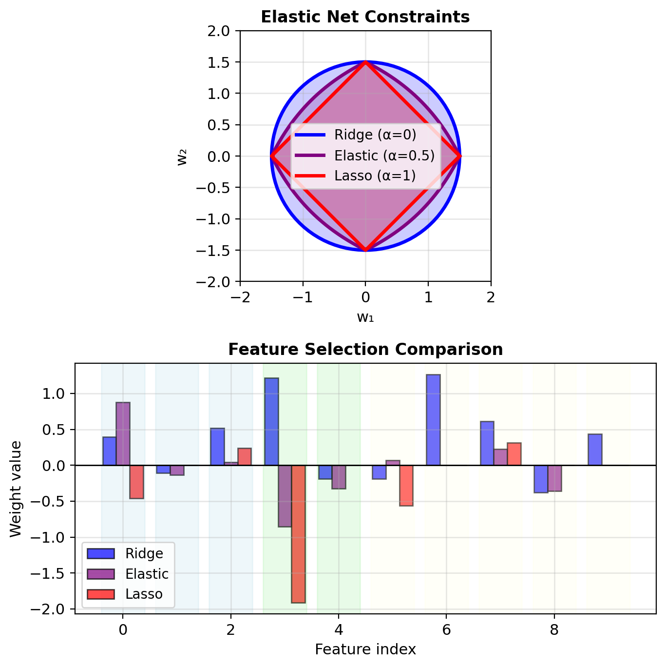Elastic Net: Selects groups of correlated features