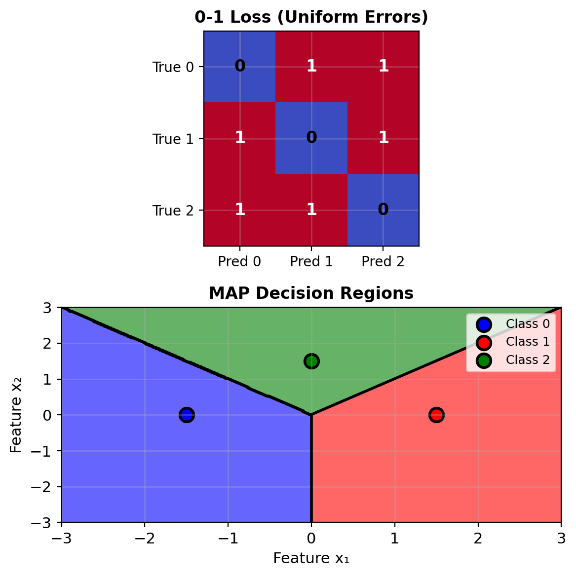 Special case: If \(L_{ij} = 1 - \delta_{ij}\) (0-1 loss), reduces to argmax of posteriors